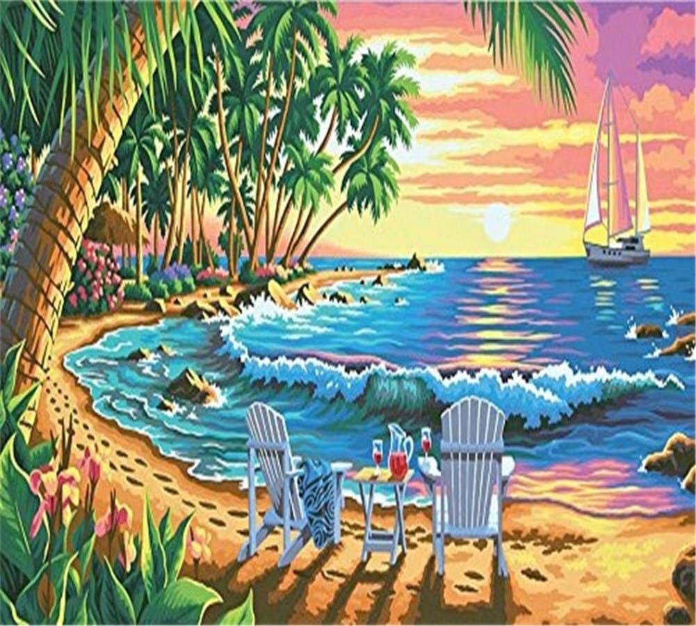 Amazon.com: 16x20'' DIY Beachside Sunset Scenery Paint by Numbers Kits On Canvas Enjoy The Beautiful Beach Holiday Art Acrylic Oil Painting for Adults and Children (Frameless)
